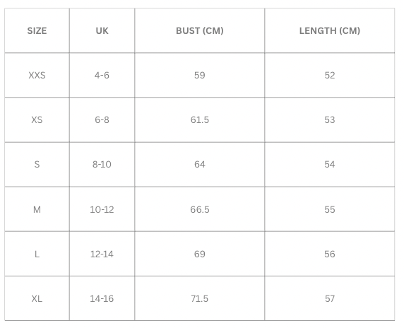 Front Length: Measure from the centre of your chest to just below your waistline.